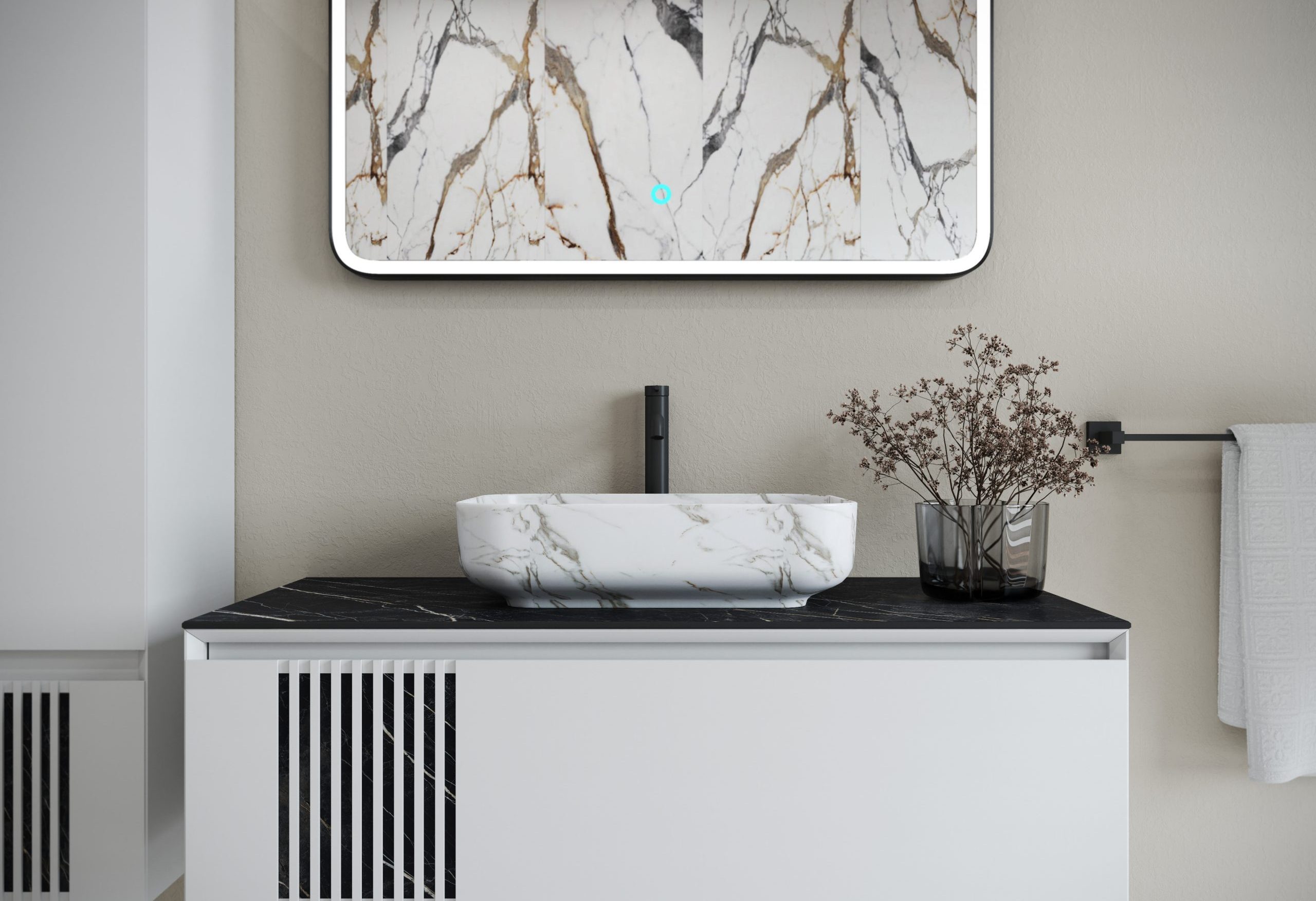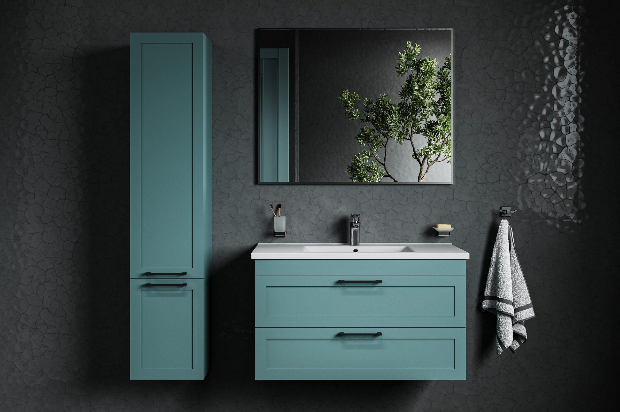 Les miroirs sont fabriqués à partir de verre AGC MIROX 3G résistant à l’humidité et sont équipés d’un éclairage LED haut de gamme. Les portes et les tiroirs sont équipés de quincaillerie haut de gamme de Blum et Hettich, tandis que les lavabos de CeraStyle (Turquie), Kolo (Pologne) et Aqua Rodos (Ukraine) complètent parfaitement le design du mobilier.